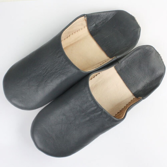 定番ダークグレーのバブーシュです。 皮本来の質感が良く出る色なので飽きがこず長くお使いいただけます。 サイズは43(26-27㎝)。 バブーシュは昔からモロッコの人々に愛され、日々履かれている、羊革のスリッパのこと。 とても柔らかい羊革でできており、履き込むごとに足の形になじみ、冬は暖かく、夏は涼しく、その履き心地は格別です。 革なめしから縫製、商品の仕上げまで全てモロッコのバブーシュ職人によるハンドメイドです。 サイズ: 43(=約26-27cm) 色柄: ダークグレー 素材: 羊革 仕入国: モロッコ