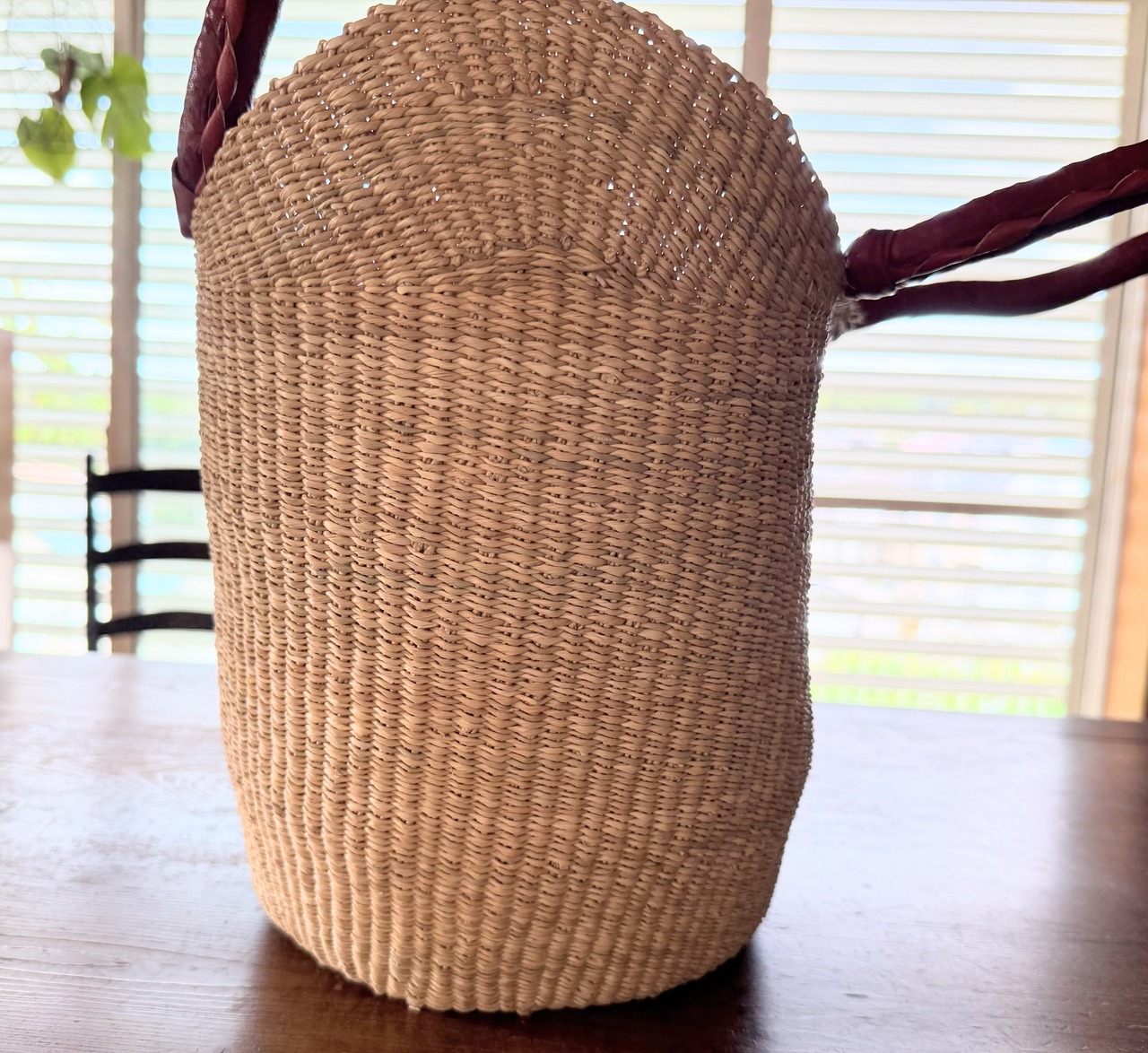素材のエレファントグラスは丈夫な水草、カゴバッグとして外出にはもちろん、インテリアバスケットとしてもお使いいただけます。