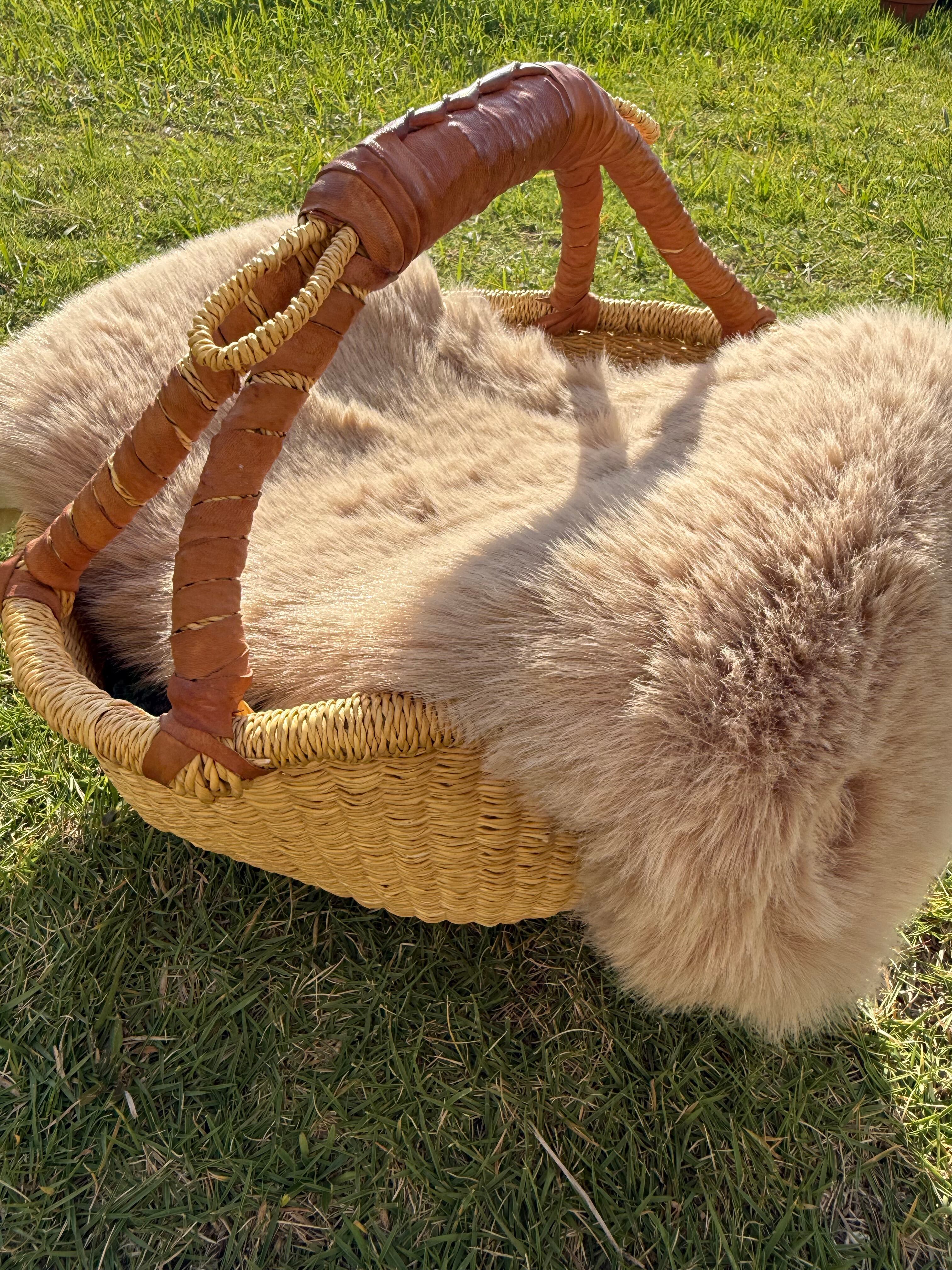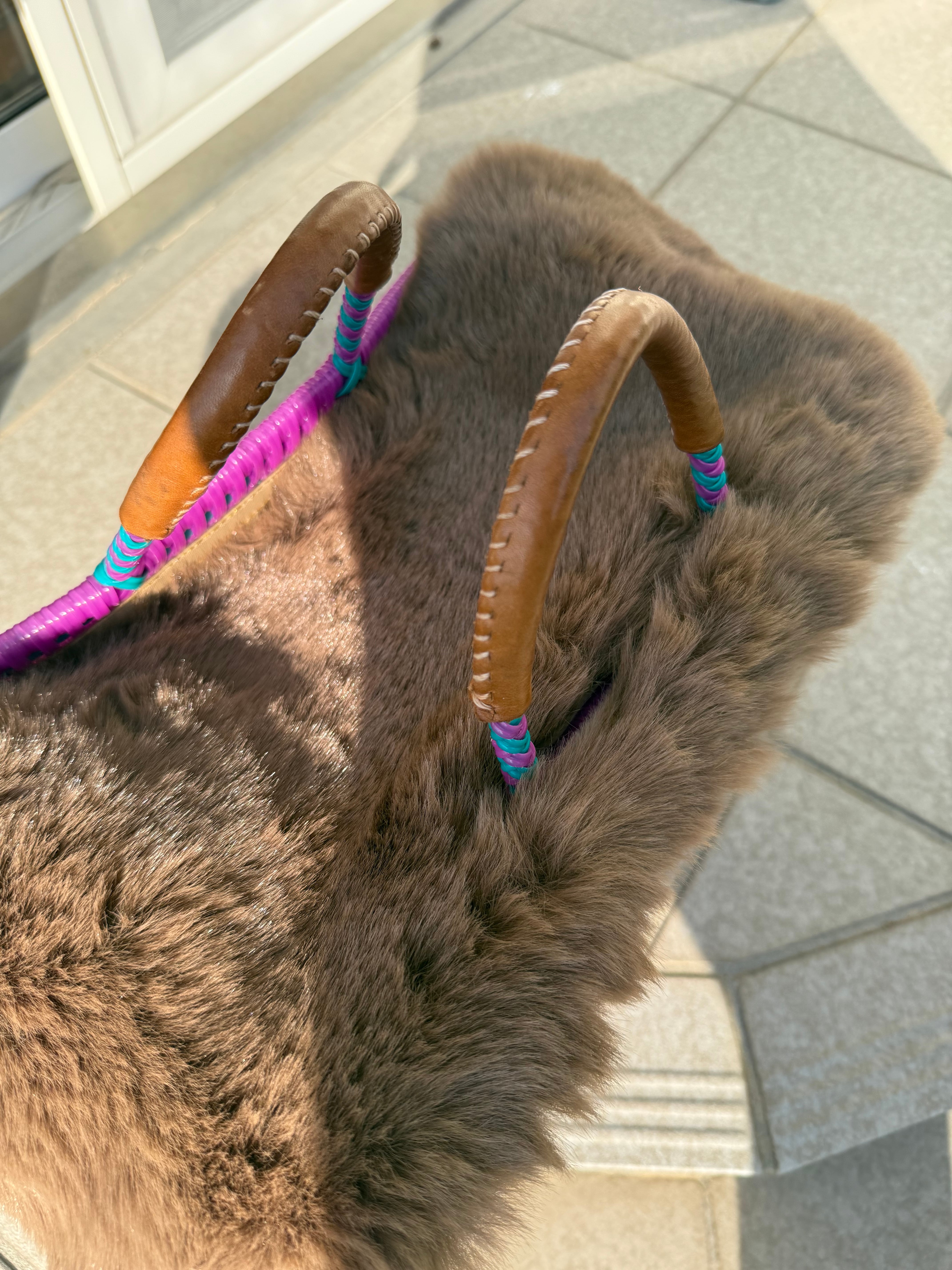 片方のハンドルに通した後にスナップで留めるタイプなので、ファーが落ちてしまう事もありません。